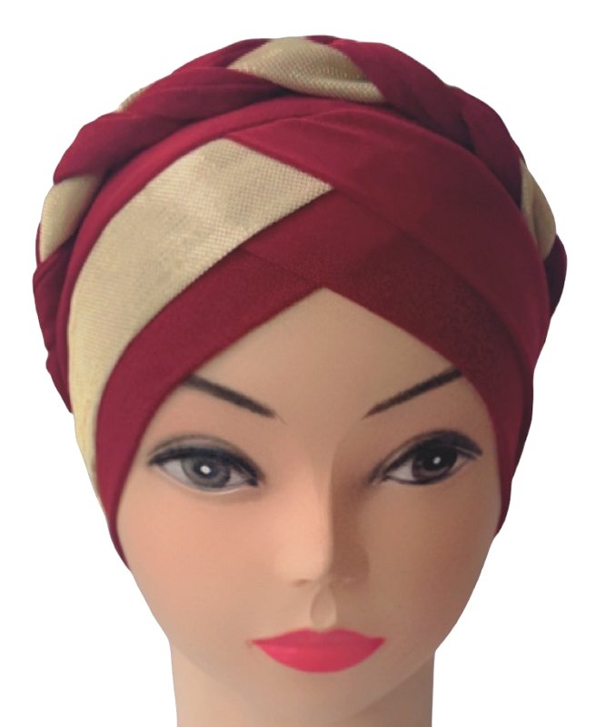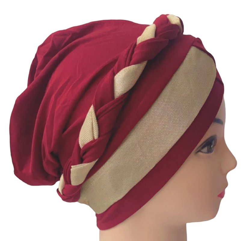 Bonnet hijab croisee a tresse pour femme - Couleur Rouge Bordeaux
