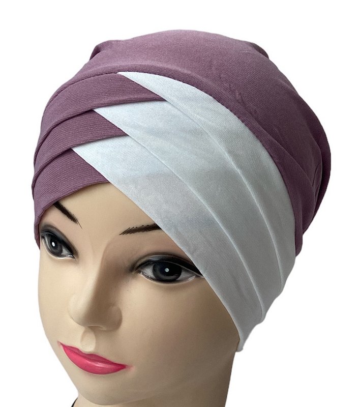 Turban bonnet croise bicolore femme moderne - Couleur Parme et Creme
