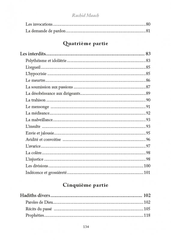 Celles-ci ont pourtant été compilées par les traditionnistes musulmans dans des centaines de recueils qui regroupent des dizaines de milliers de ces paroles appelées « hadiths ». Le hadith désigne donc une parole - ou plus rarement un acte du Prophète ou son approbation tacite - rapportée par l’un de ses compagnons. Les recueils de hadiths sont donc proches, par leur contenu, des quatre évangiles qui rapportent les paroles et les faits et gestes de Jésus, si ce n’est que le plan des évangiles suit le déroulement de la vie du Christ, tandis que les recueils de hadiths sont généralement classés par thèmes, comme dans notre livre-ci.