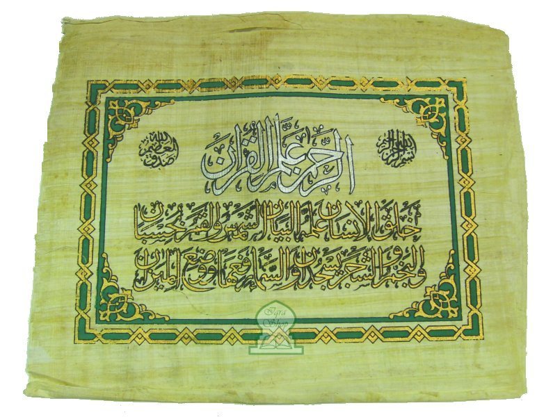 Papyrus Sourate Ar-Rahman calligraphiée - مخطوطة برديّة أصليّة عليها الآيات الأولى من سورة الرّحمن - REF. 14465 (4.90 €)