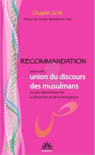 Voici une excellente épître, concise dans son contenu mais riche dans sa portée. Chaykh Sa'di y prodigue un conseil sincère non seulement pour les savants mais aussi pour le commun des musulmans afin d'unir leurs discours et de réunir les cœurs en se saisissant fermement tous ensemble de l'anse d'Allah et de les mettre en garde contre la division et la divergence qui mènent à l'inimitié réciproque, la rupture et la haine.