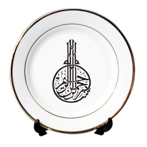 Assiette en porcelaine avec bordure dorée et calligraphie de la Basmala - بسم الله الرحمن الرحيم - REF. 14071 (14.90 €)