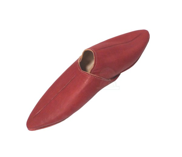 Babouche homme citadine FASSI, fabriqué en cuir traité, de couleur rouge ; cette babouche est simple et possède une extrémité pointue.