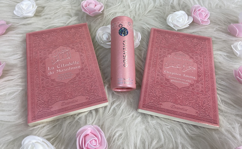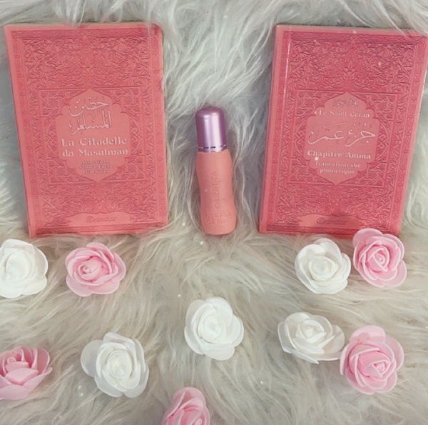 Cadeau pour femme musulmane : La Citadelle du musulman + Coran Chapitre Amma + parfum de couleur rose assortis (Cadeaux pas cher)