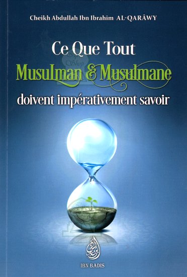 Ce Que Tout Musulman & Musulmane doivent impérativement savoir, de Abdullah Ibn Ibrahim Al-Qarâwy, Traduit par Said Abu Talha, Revu et corrigé par par ABu Hamza Al-Germâny, Publié par Le bureau de prêche de Rabwah (Riyad), Version Bilingue ( Français-Arabe).