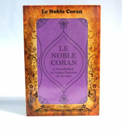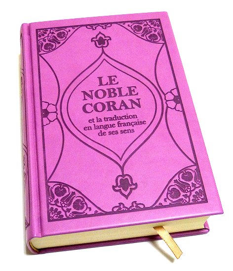 Le Noble Coran avec couverture cartonnée de type cuir, doux au toucher. Très jolie couleur entre le mauve et le magenta. Idéal pour offrir. Fourni dans sa boite cadeau.