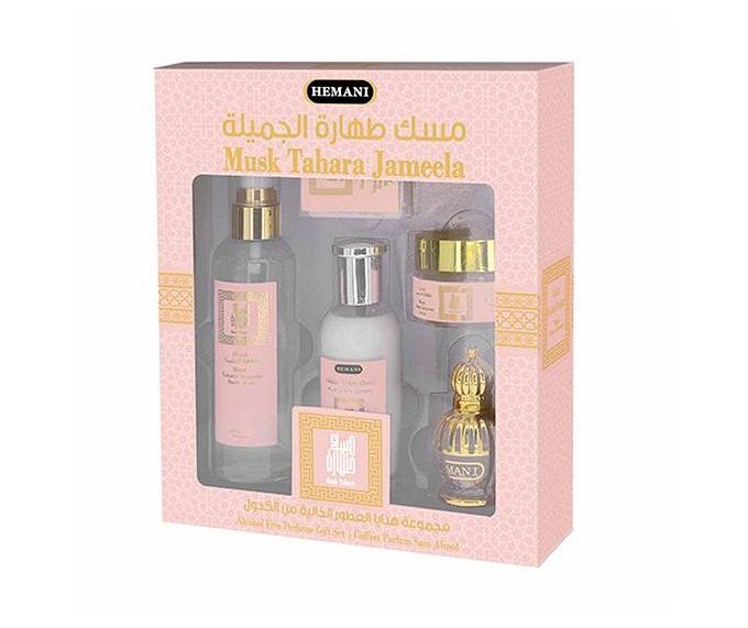 Musk Tahara Jameela est un parfum de rose pur avec des notes de tête florales et fruitées et des notes de cœur de rose et de musc délicatement posées sur une base boisée.