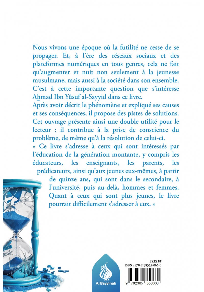 "La lutte contre la futilité" d'Ahmad Ibn Yusuf al-Sayyid est une analyse profonde de la propagation de la futilité dans l'ère moderne, exacerbée par les réseaux sociaux et les plateformes numériques. Cet ouvrage examine les causes, les conséquences et propose des solutions pour contrer ce phénomène, s'adressant principalement aux éducateurs, parents, et jeunes adultes conscients des défis actuels.