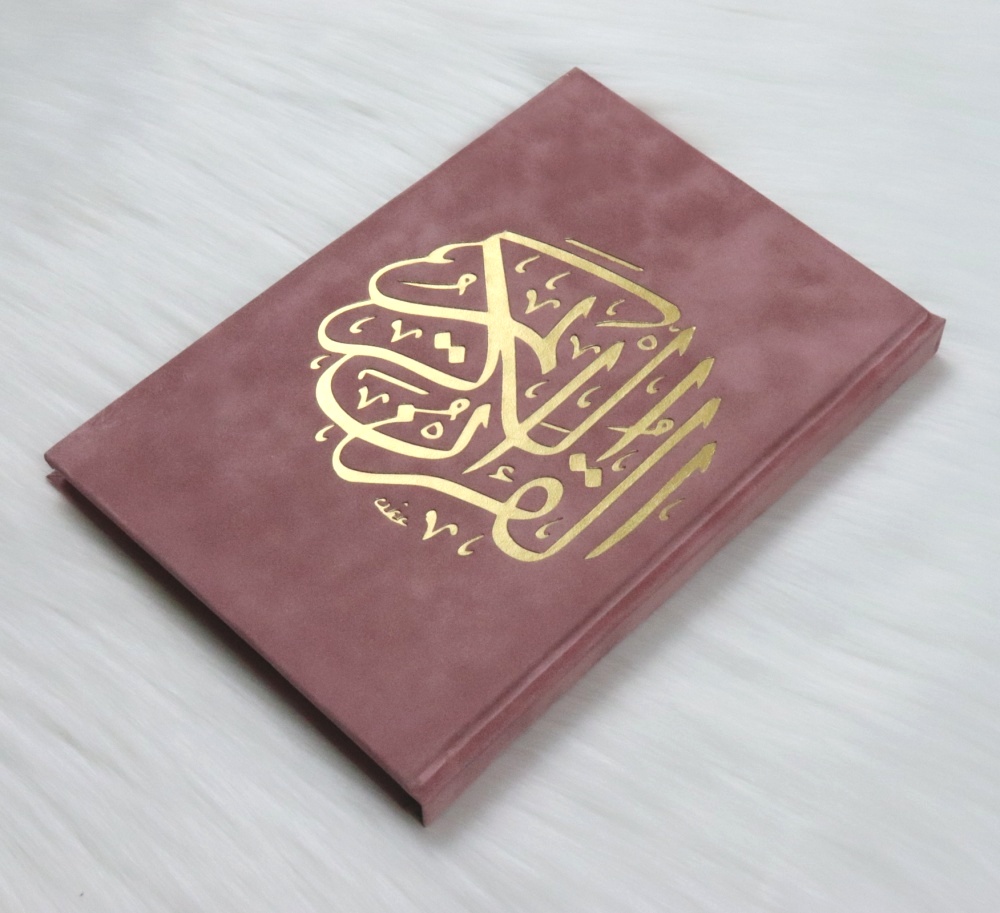 Le Coran couverture rigide de luxe couverture en daim doree (14 x 20 cm) - Couleur Vieux rose