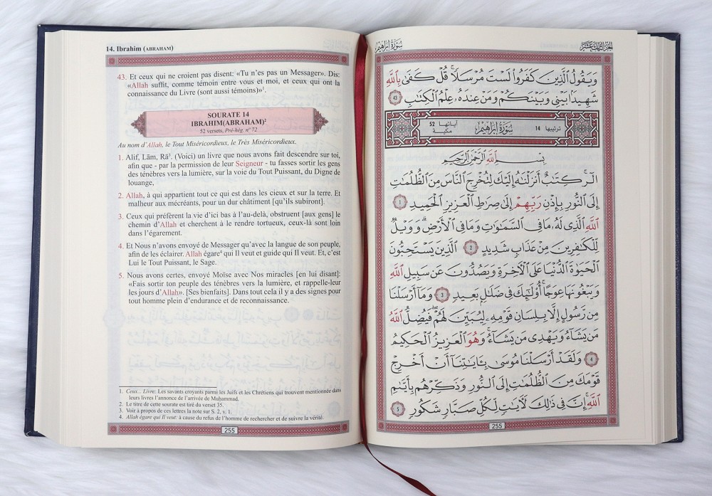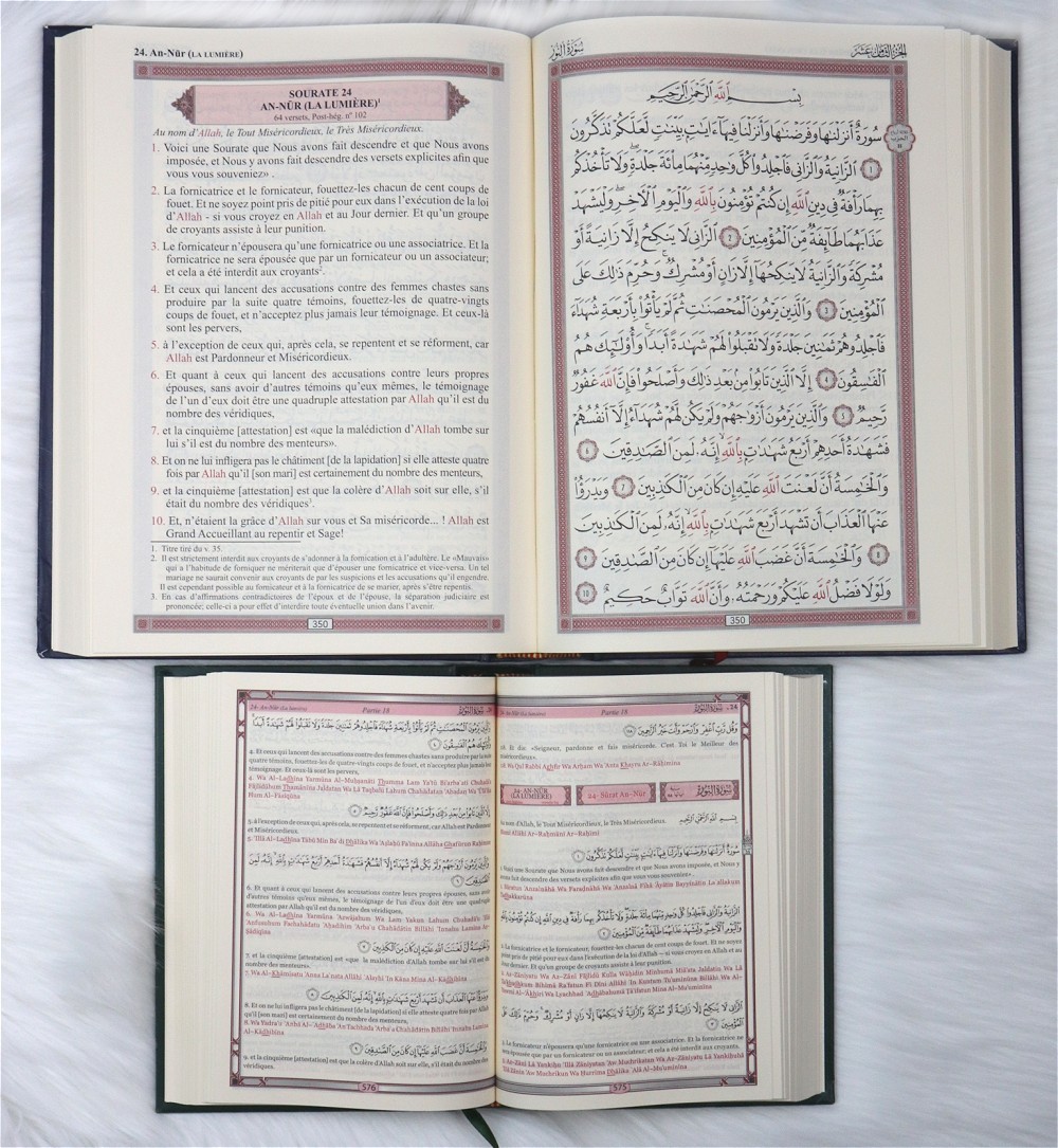 Découvrez ces Corans en langue arabe et française avec une très grande écriture.