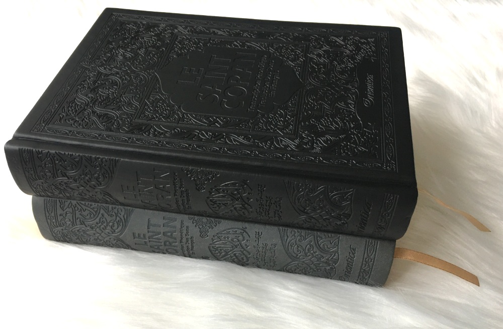 Magnifique Coran avec couverture cartonnée de type cuir/cuir, doux au toucher. Très jolie couleur noir. Idéal pour offrir.
