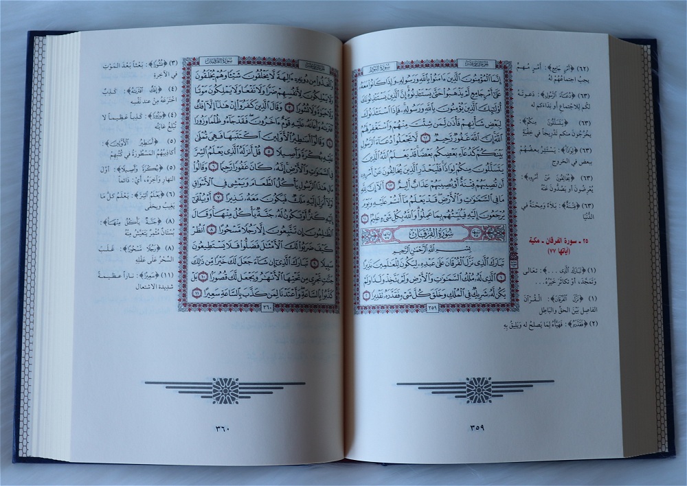 Le Saint Coran en langue arabe avec en marge l'explication "tafsir wa bayan" : exégèse et explications simplifiées du sens des versets et des mots du Coran.