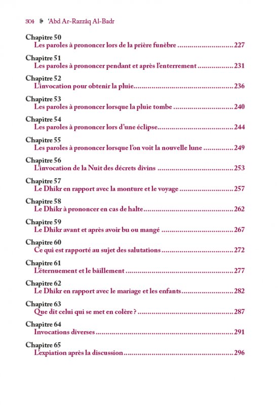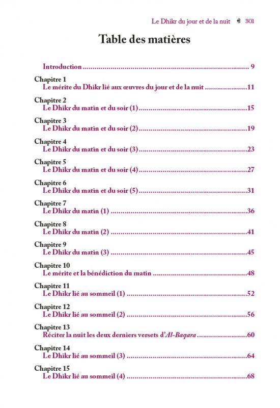 invocations et formules de Dhikr qui rythment les jours et les nuits des croyants et les rattachent à leur Seigneur.