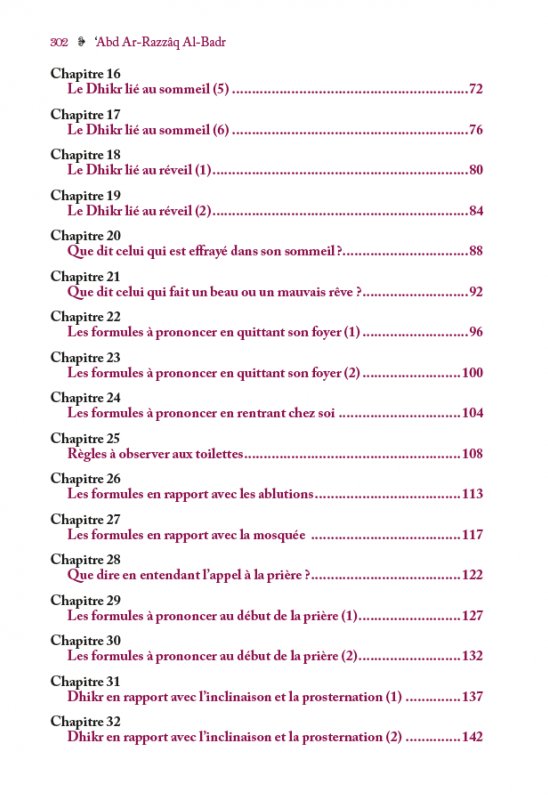 livre « Fiqh al-ad‘iya wal-adhkâr » du cheikh ‘Abd Ar-Razzâq Al-Badr, « Le Dhikr du jour et de la nuit » est une compilation des principales