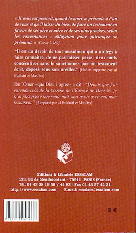 Ibn ‘Omar (R.A) a dit : «Depuis que j’ai entendu cela de la bouche de l’envoyé de Dieu (SAW), je n’ai plus passé un seule nuit sans avoir avec moi mon testament.» [Rapporté par Al-Bukhâri et Muslim]