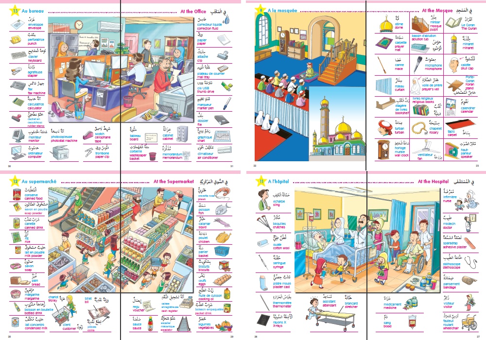 Cet imagier pédagogique et ludique, qui comporte des milliers de mots dans les trois langues, illustrés et regroupés en thèmes, permet de faciliter la lecture et l’apprentissage en stimulant la mémoire visuelle. Aussi, les illustrations des différentes scènes et situations de la vie quotidienne familiarisent l'enfant avec le monde qui l’entoure et l’accompagnent en douceur dans l’apprentissage de ces trois précieuses langues.