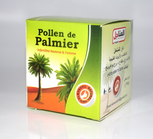 Le pollen de palmier a des vertus bienfaisantes , il permet un nettoyage utérin pendant et après les règles,il régularise le cycle. Il permet également d’augmenter la production gonadique et de spermatozoïdes, il augmente aussi l’épaisseur de l’endomètre. Toutes ses vertus,si Allah l’accorde boostent la fertilité de la femme et de l’homme.