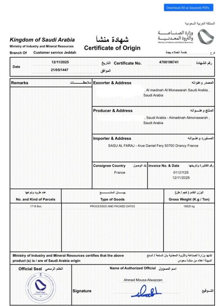 Dattes Al-Ajwa de Médine (Arabie Saoudite) emballées dans une boite hermétique, qualité Bio.